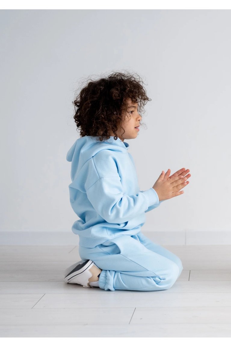 Detské tepláky babyblue. Detské bavlnené tepláky s vreckami, vyrobené z vysoko kvalitného materiálu, ktorý neobsahuje žiadne chemické a škodlivé látky. Tepláky sú jemné a príjemné na dotyk, zároveň vzdušné a šetrné k pokožke. Vyrobené v EÚ. Tepláky sú vyrobené z najkvalitnejšej bavlny Oko-Tex Standard 100.