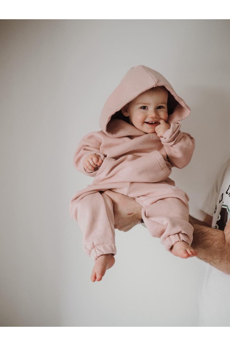 Detské tepláky púdrová ružová. Detské bavlnené tepláky s vreckami, vyrobené z vysoko kvalitného materiálu, ktorý neobsahuje žiadne chemické a škodlivé látky. Tepláky sú jemné a príjemné na dotyk, zároveň vzdušné a šetrné k pokožke. Vyrobené v EÚ. Tepláky sú vyrobené z najkvalitnejšej bavlny Oko-Tex Standard 100.