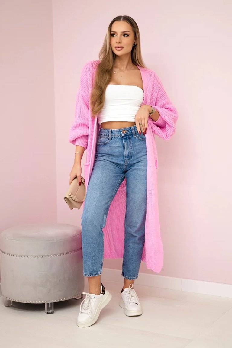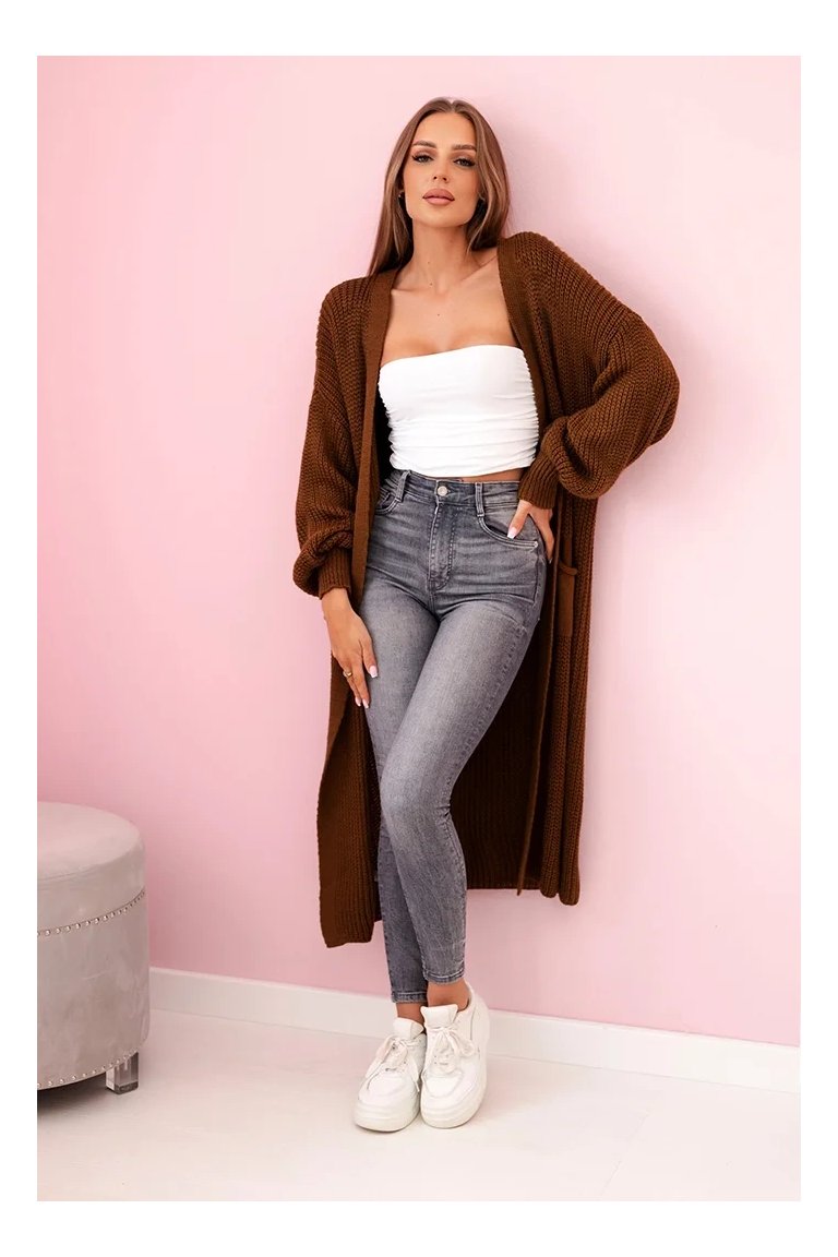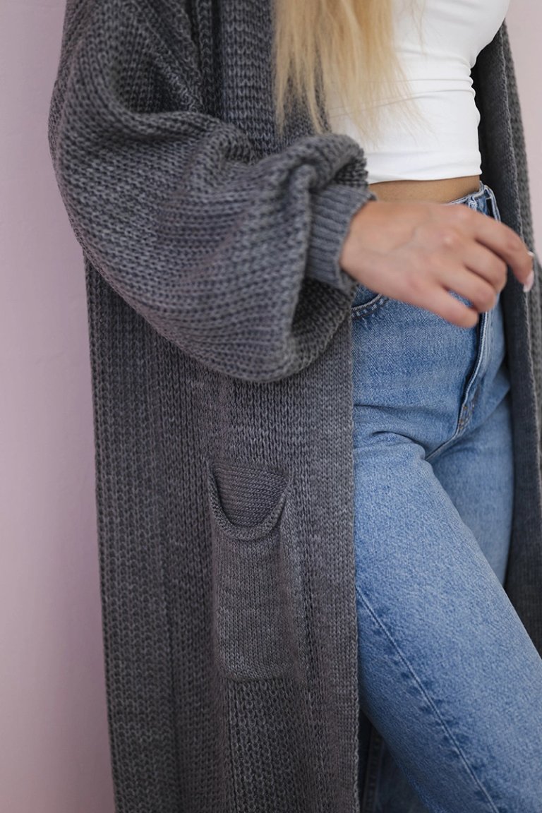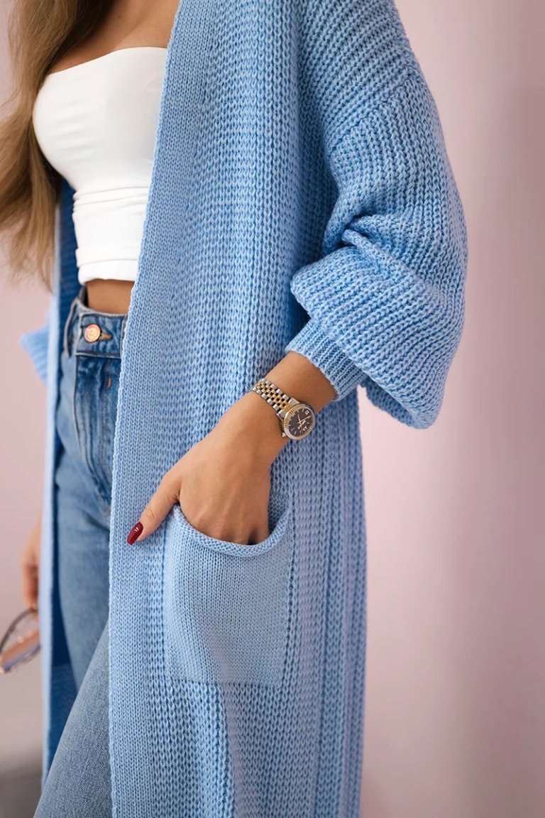 Dlhý kardigán Suzan. Dámsky pohodlný dlhý kardigán, vyrobený z mäkkých a na dotyk príjemných vlákien. Kardigán je univerzálnej veľkosti, takže by mal byť vhodný pre ženy, ktoré nosia veľkosť S, M a L.