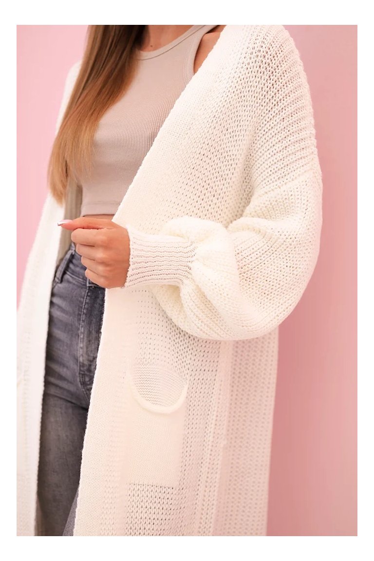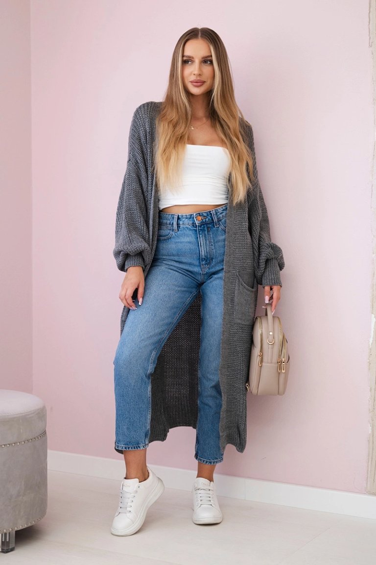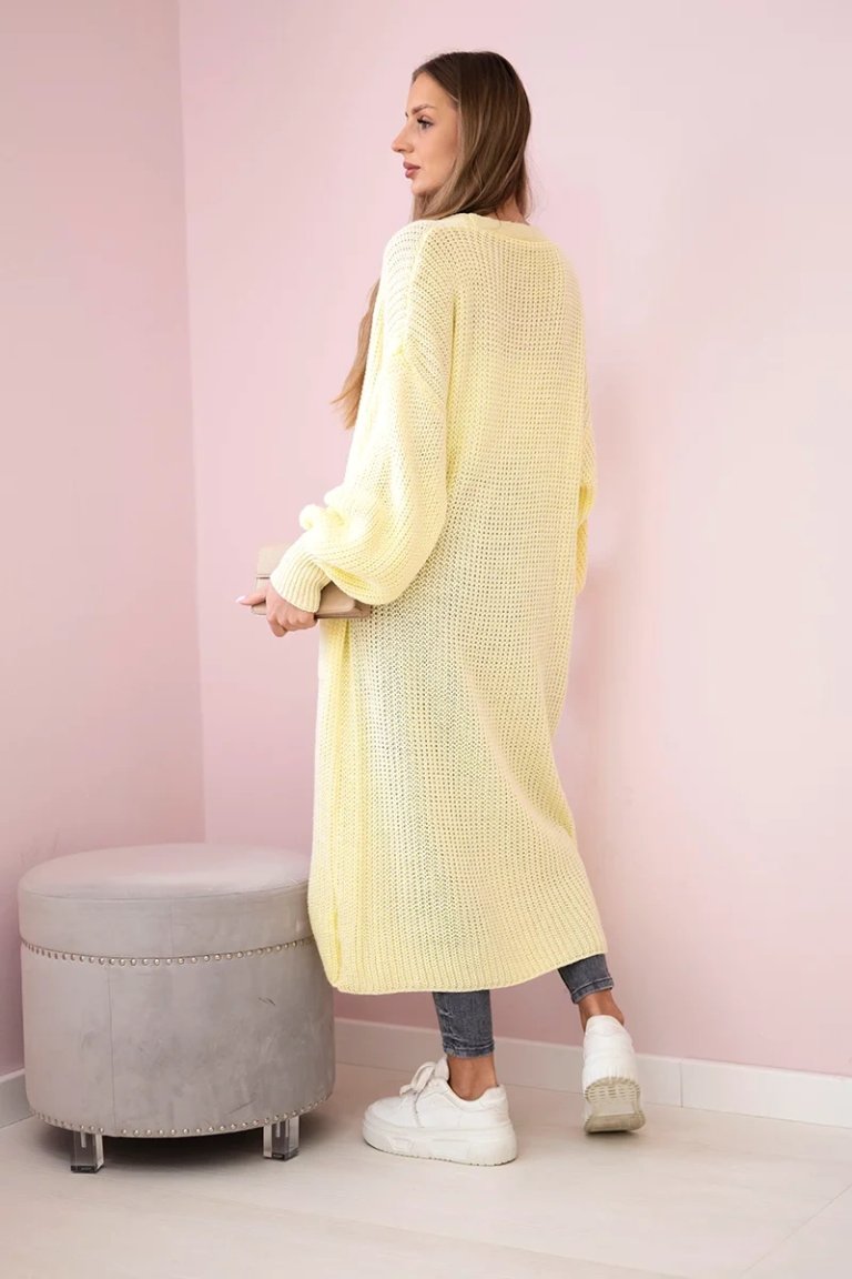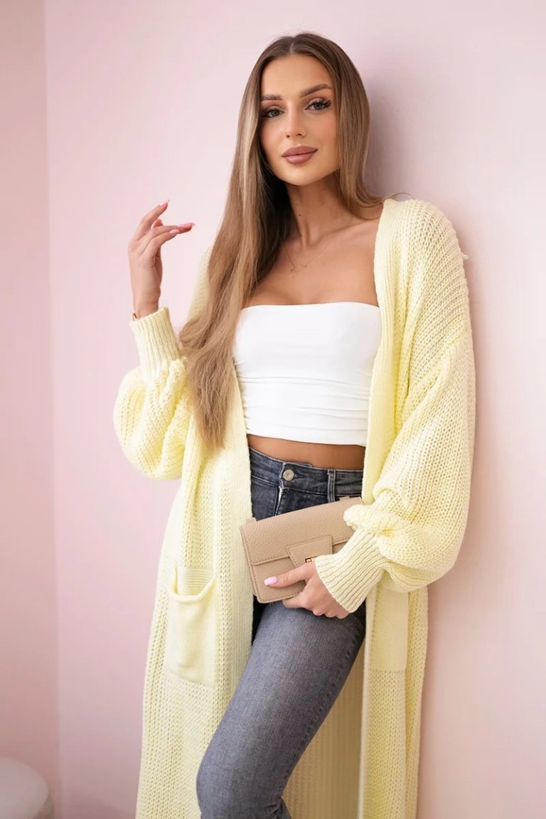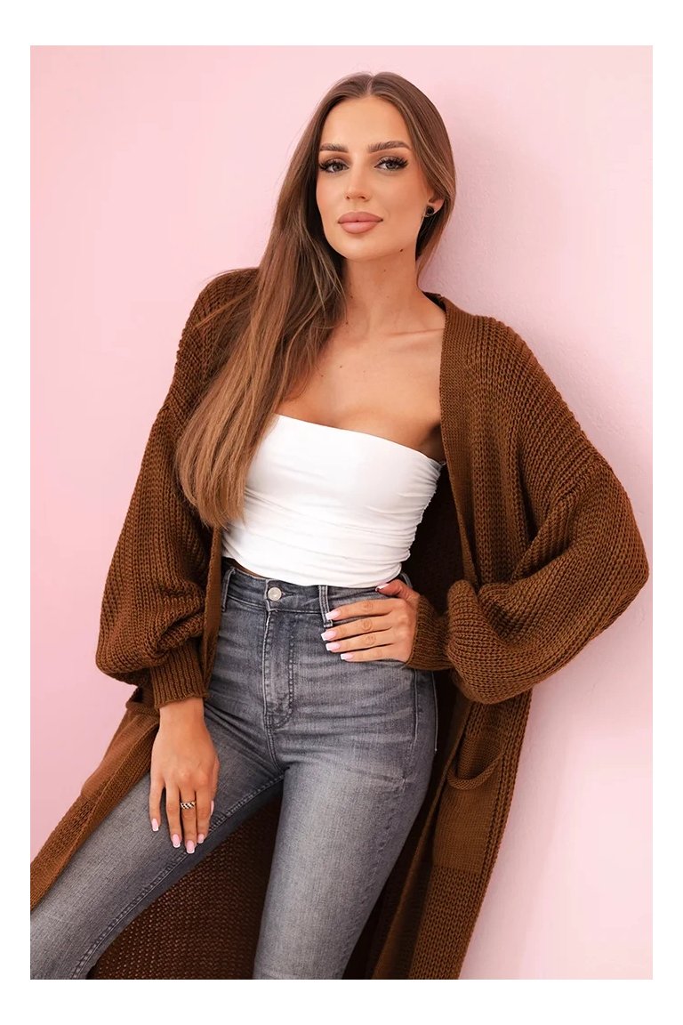 Dlhý kardigán Suzan. Dámsky pohodlný dlhý kardigán, vyrobený z mäkkých a na dotyk príjemných vlákien. Kardigán je univerzálnej veľkosti, takže by mal byť vhodný pre ženy, ktoré nosia veľkosť S, M a L.