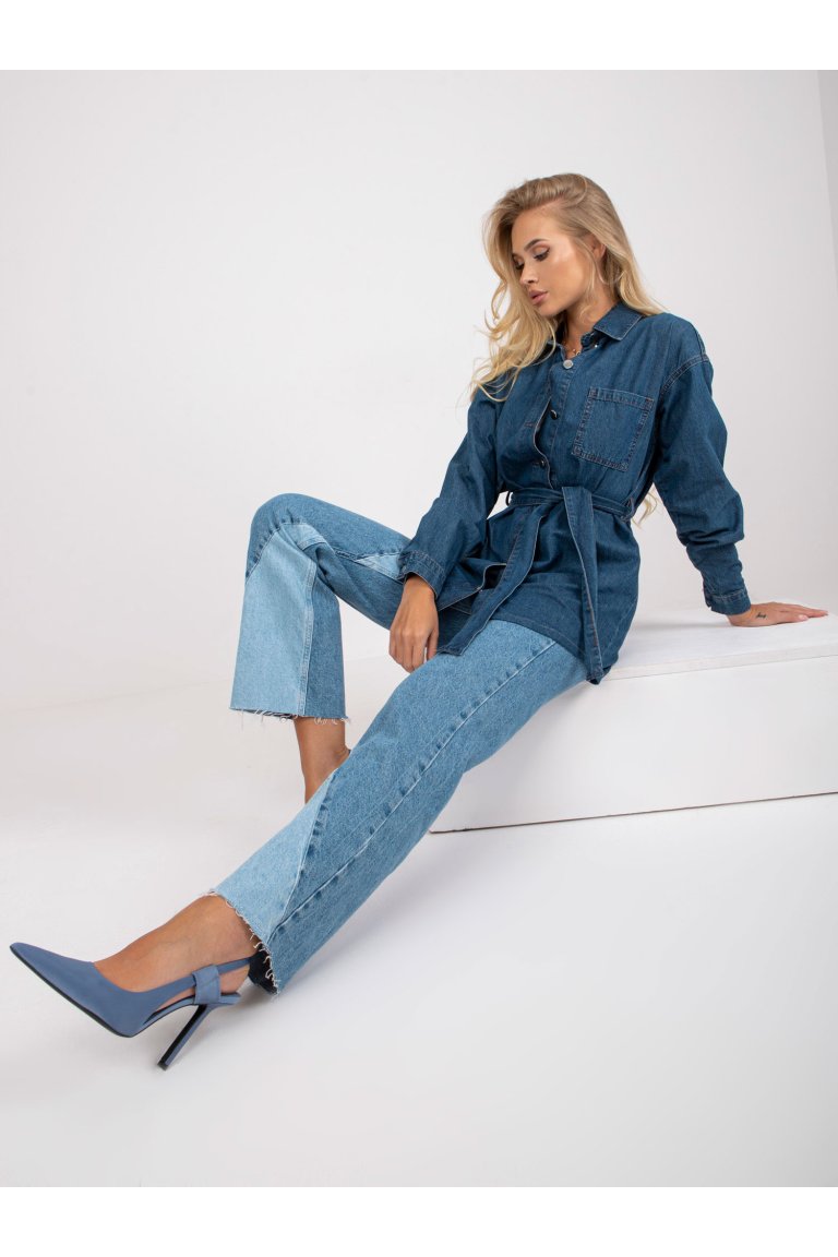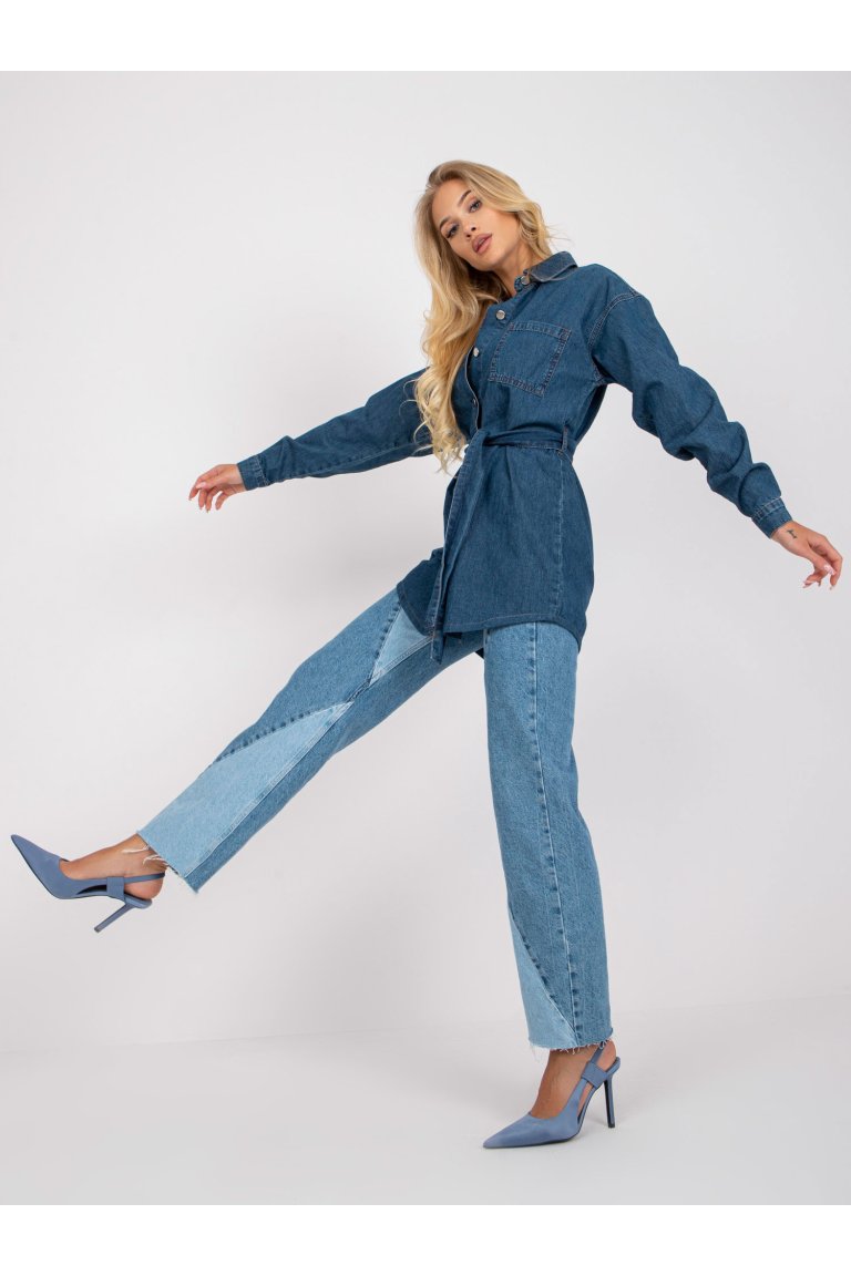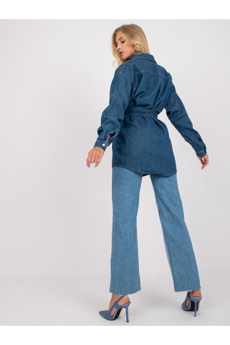 Džínsová košeľa. Dámska pohodlná tmavomodrá džínsová košeľa so zaväzovaním v páse. Džínsová košeľa má klasický, hladký vzor a bočné vrecká a jej úzky strih zvýrazní vašu postav. Košeľa je vyrobená z kvalitného, mäkkého a príjemného materiálu.