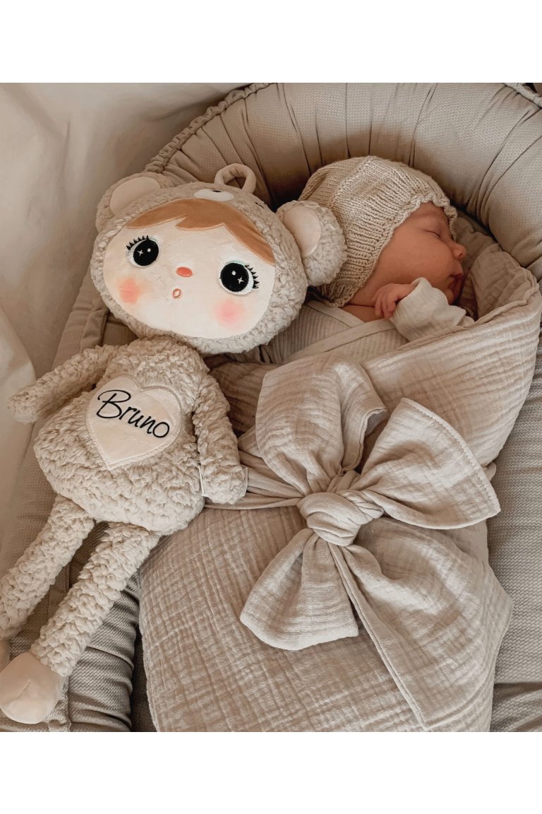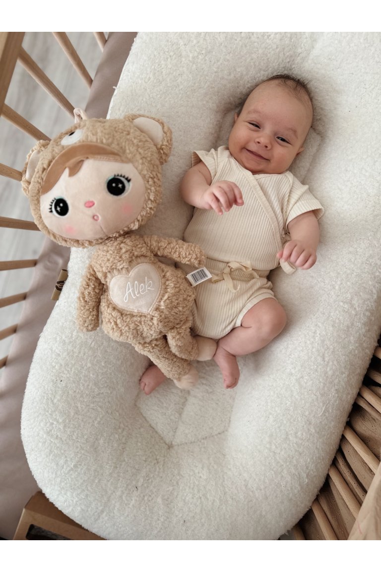 Personalizácia: ponúkame možnosť pridať na hračku meno, čím sa stáva krásnym osobným darčekom. Meno bude vyrobené z odevnej fólie certifikovanej OEKO-TEX Standard 100, čo zaručuje bezpečné použitie aj pre najmenšie detičky. Ak si prajete hračku personalizovať do poznámky pri objednávke nám prosím napíšte meno, ktoré si na hračku prajete. Do poznámky napíšte aj farbu písma: biele, sivé, béžové, čierne alebo ružové. Doba dodania je približne 7/14 dní.