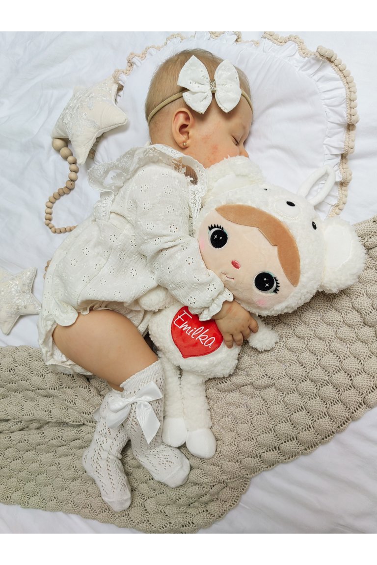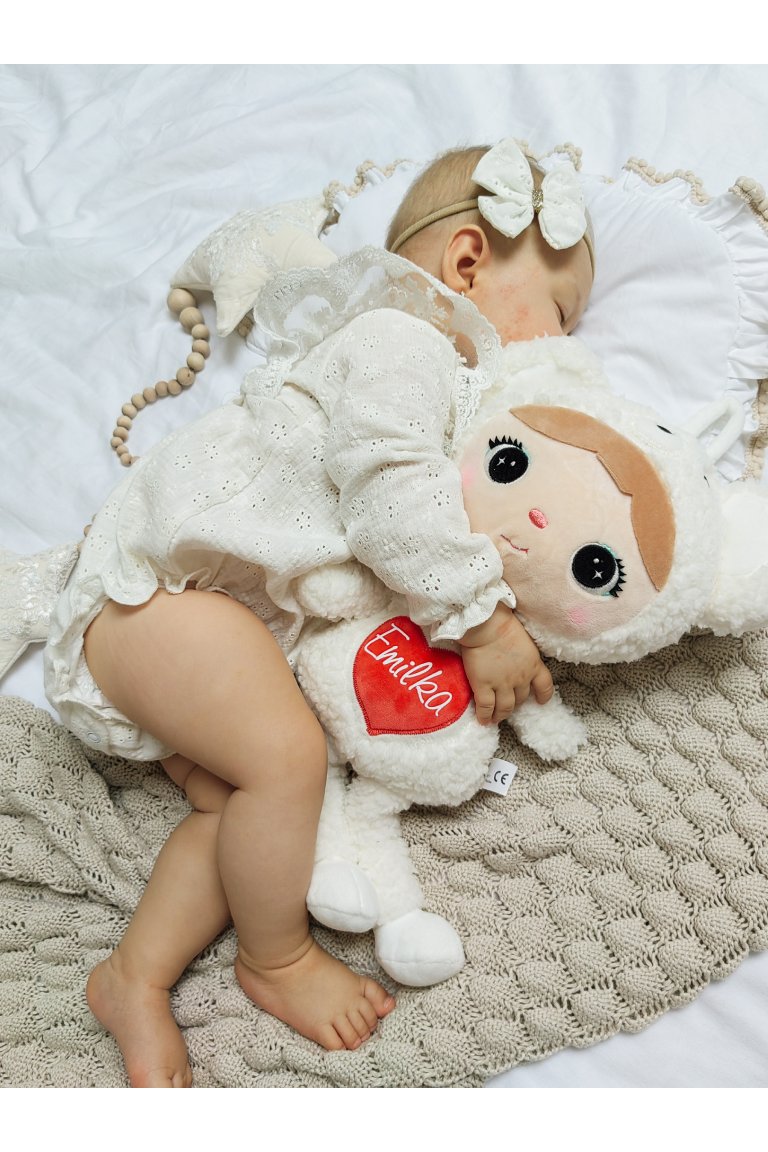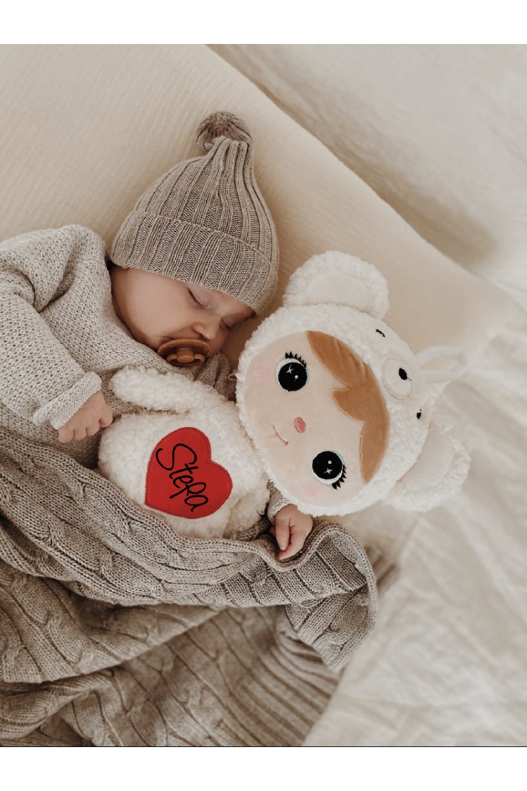 Personalizácia: ponúkame možnosť pridať na hračku meno, čím sa stáva krásnym osobným darčekom. Meno bude vyrobené z odevnej fólie certifikovanej OEKO-TEX Standard 100, čo zaručuje bezpečné použitie aj pre najmenšie detičky. Ak si prajete hračku personalizovať do poznámky pri objednávke nám prosím napíšte meno, ktoré si na hračku prajete. Do poznámky napíšte aj farbu písma: biele, sivé, béžové, čierne alebo ružové. Doba dodania je približne 7/14 dní.