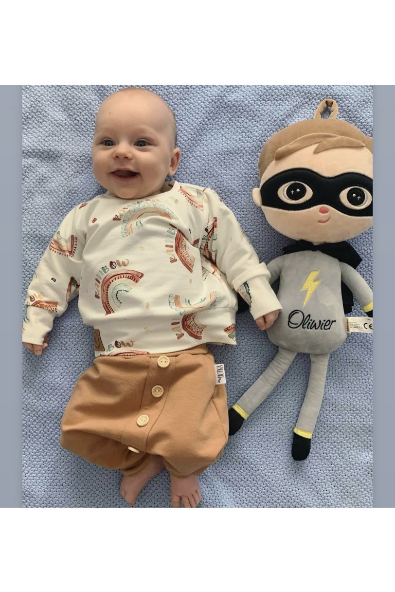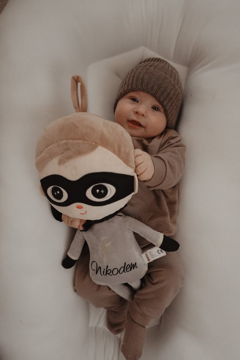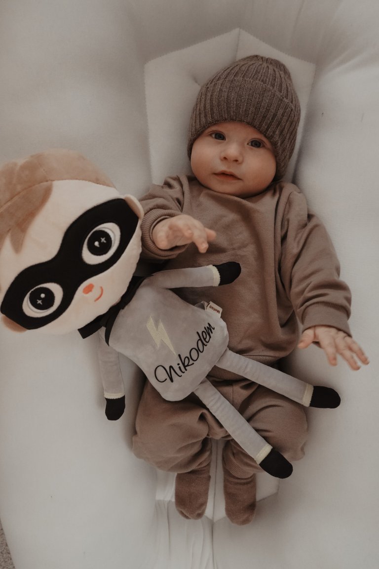Personalizácia: ponúkame možnosť pridať na hračku meno, čím sa stáva krásnym osobným darčekom. Meno bude vyrobené z odevnej fólie certifikovanej OEKO-TEX Standard 100, čo zaručuje bezpečné použitie aj pre najmenšie detičky. Ak si prajete hračku personalizovať do poznámky pri objednávke nám prosím napíšte meno, ktoré si na hračku prajete. Do poznámky napíšte aj farbu písma: biele, sivé, béžové, čierne alebo ružové. Doba dodania je približne 7/14 dní.