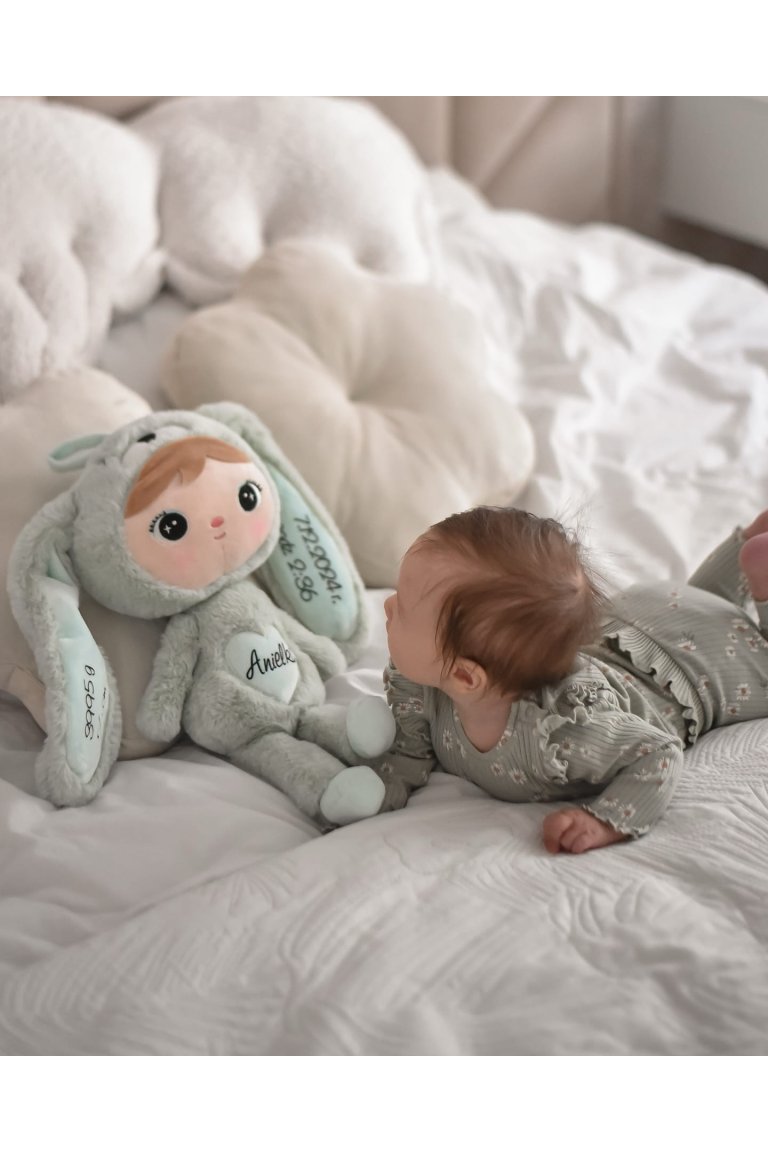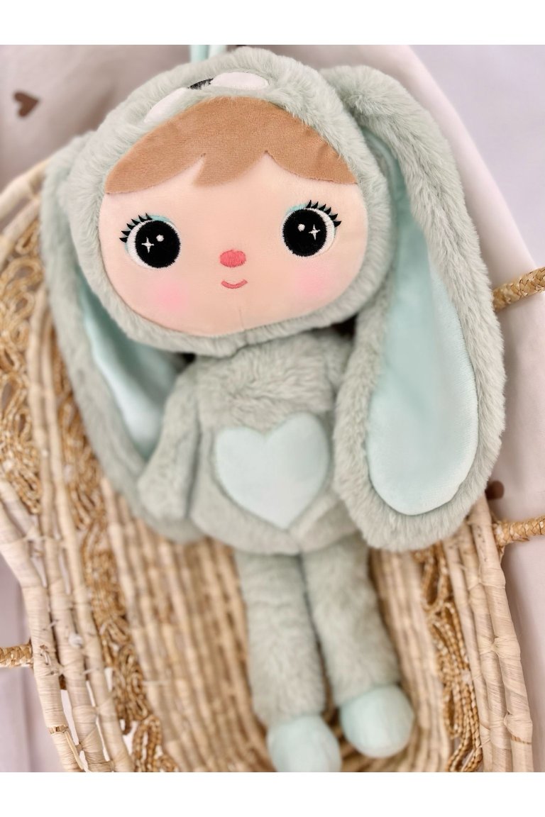 Metoo bábika Zajačik svetlozelený, 50 cm. Bábika Zajačik bude veľmi milým spoločníkom pre vaše detičky. Je vyrobená z bezpečného a príjemného materiálu na dotyk, ktorý zabezpečuje nielen pohodlie, ale aj trvanlivosť.
