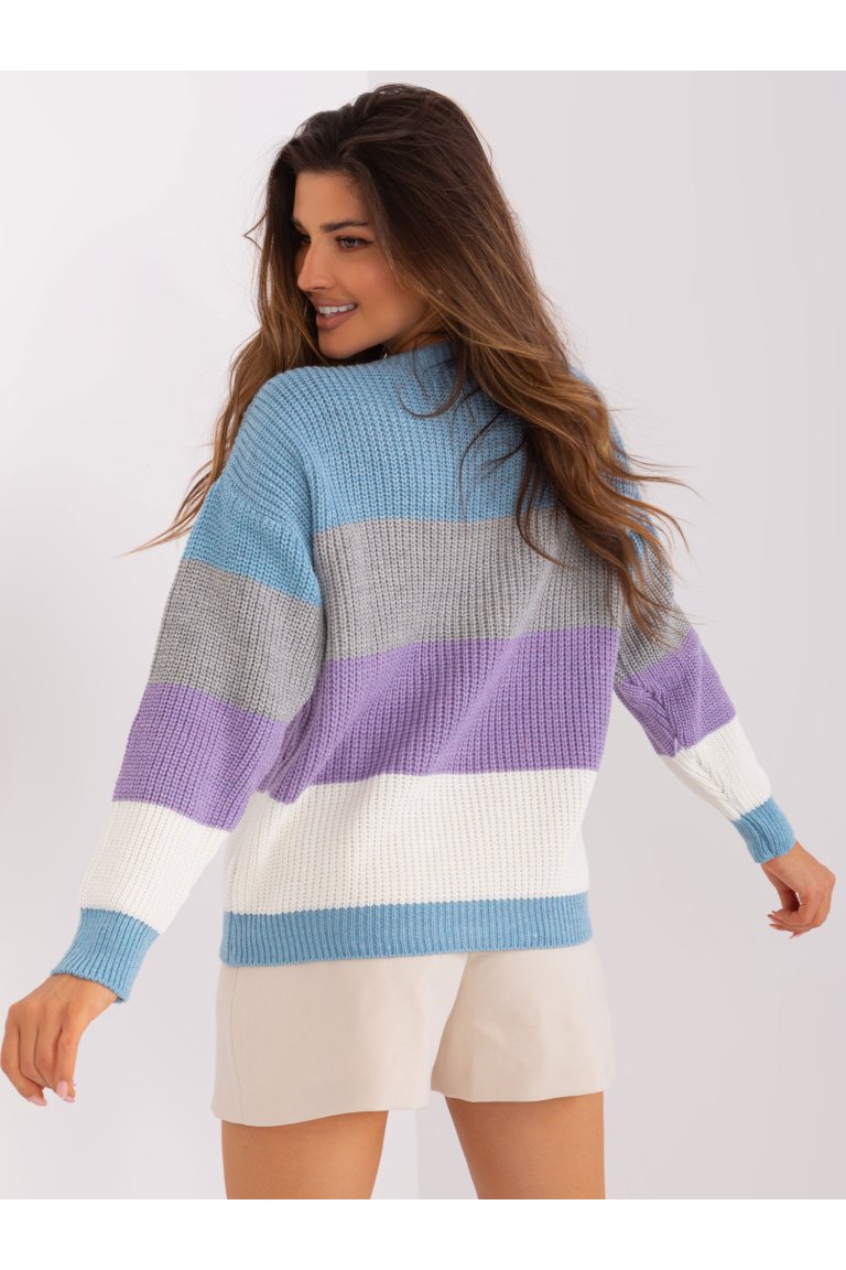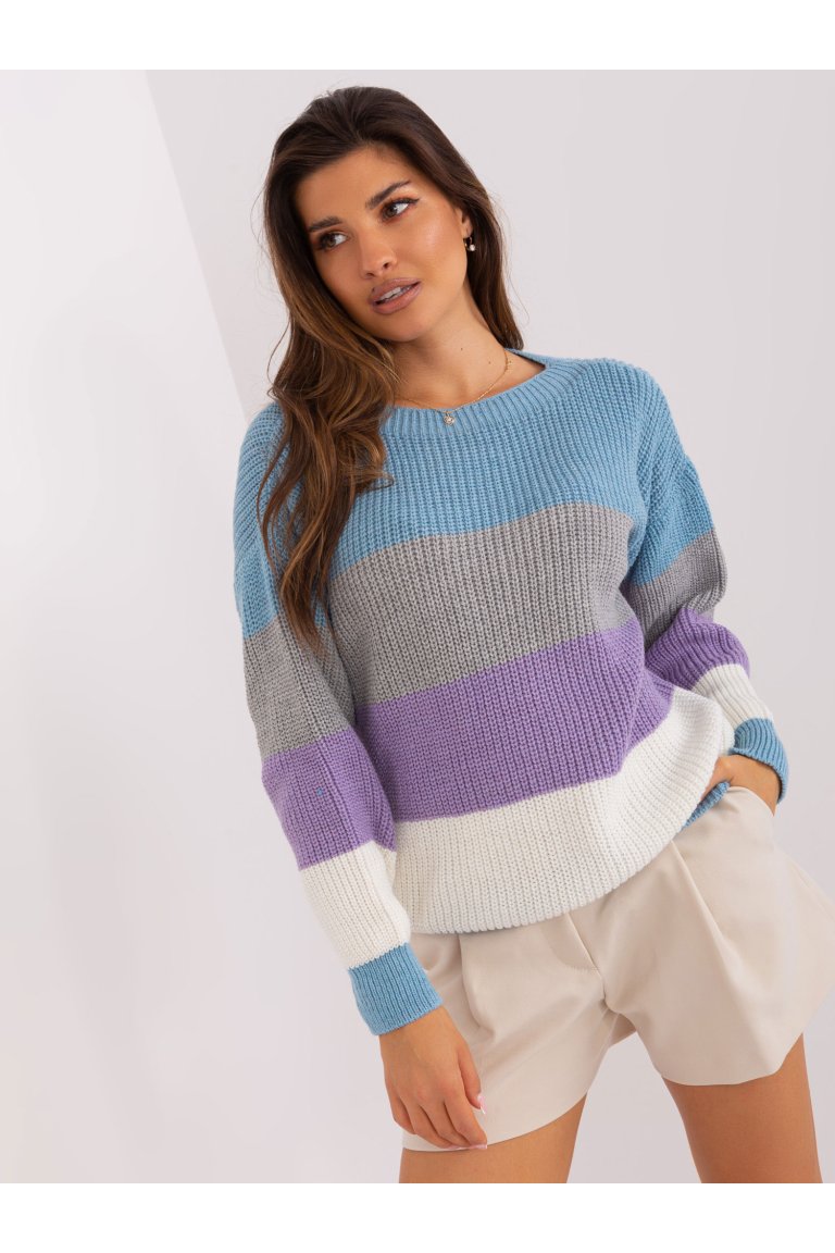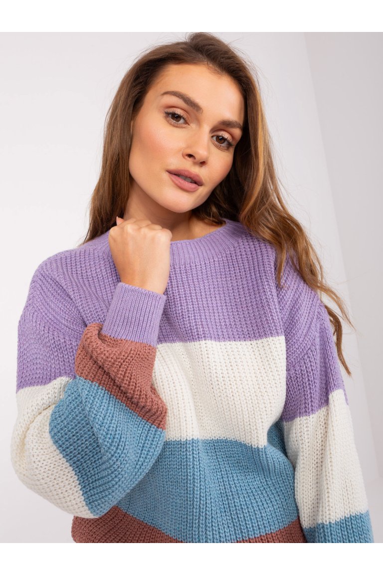 Oversize sveter Helen. Dámsky pohodlný sveter obľúbeného oversize strihu. Pruhovaný sveter, vyrobený z mäkkého a príjemného materiálu. Je univerzálnej veľkosti, takže by mal byť vhodný pre ženy, ktoré nosia veľkosť S, M a L.