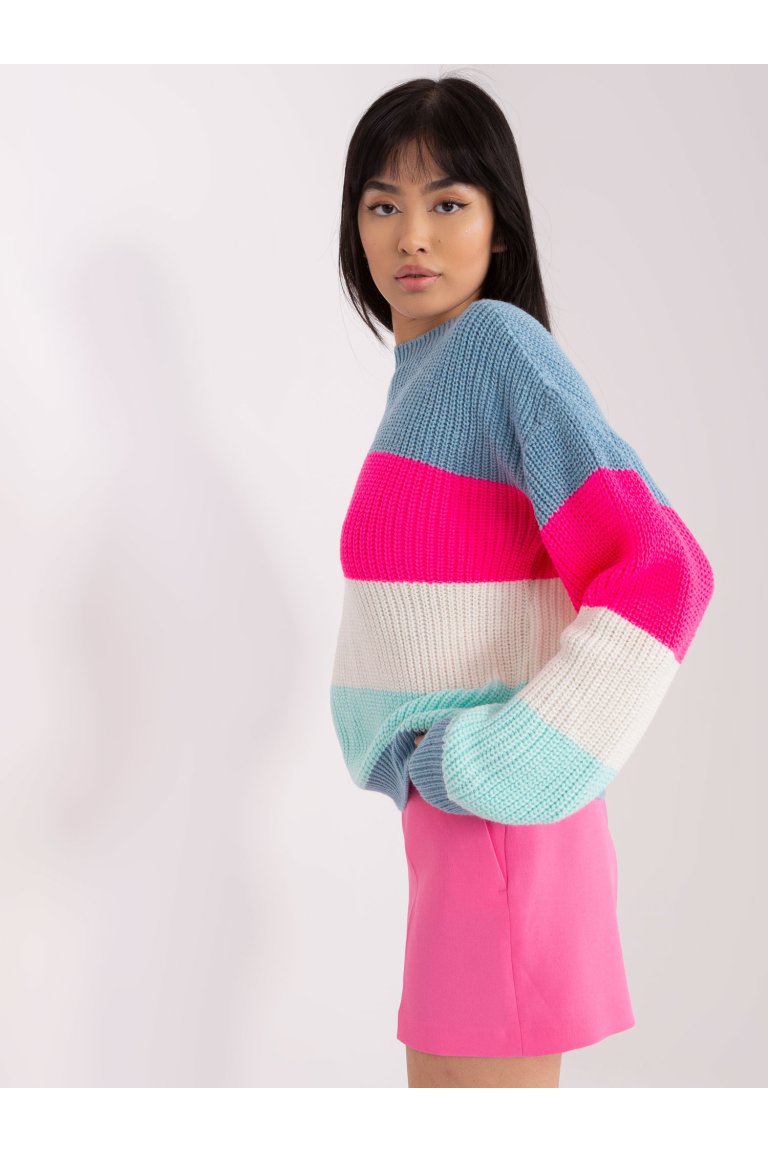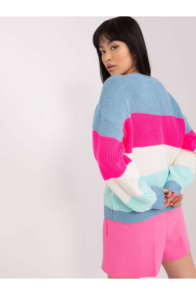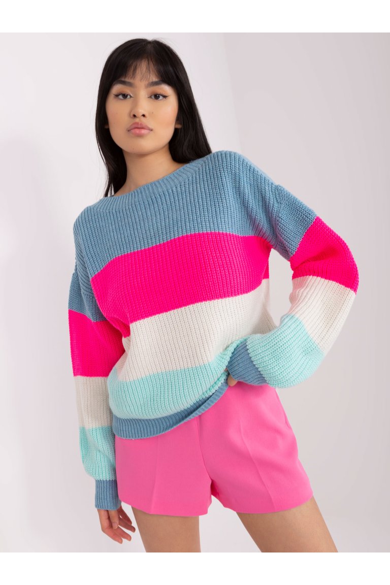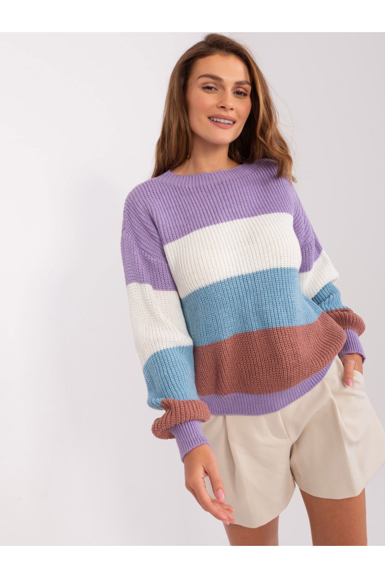 Oversize sveter Helen. Dámsky pohodlný sveter obľúbeného oversize strihu. Pruhovaný sveter, vyrobený z mäkkého a príjemného materiálu. Je univerzálnej veľkosti, takže by mal byť vhodný pre ženy, ktoré nosia veľkosť S, M a L.