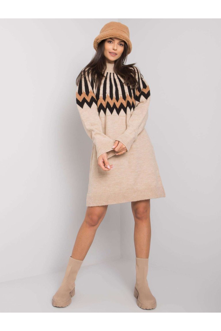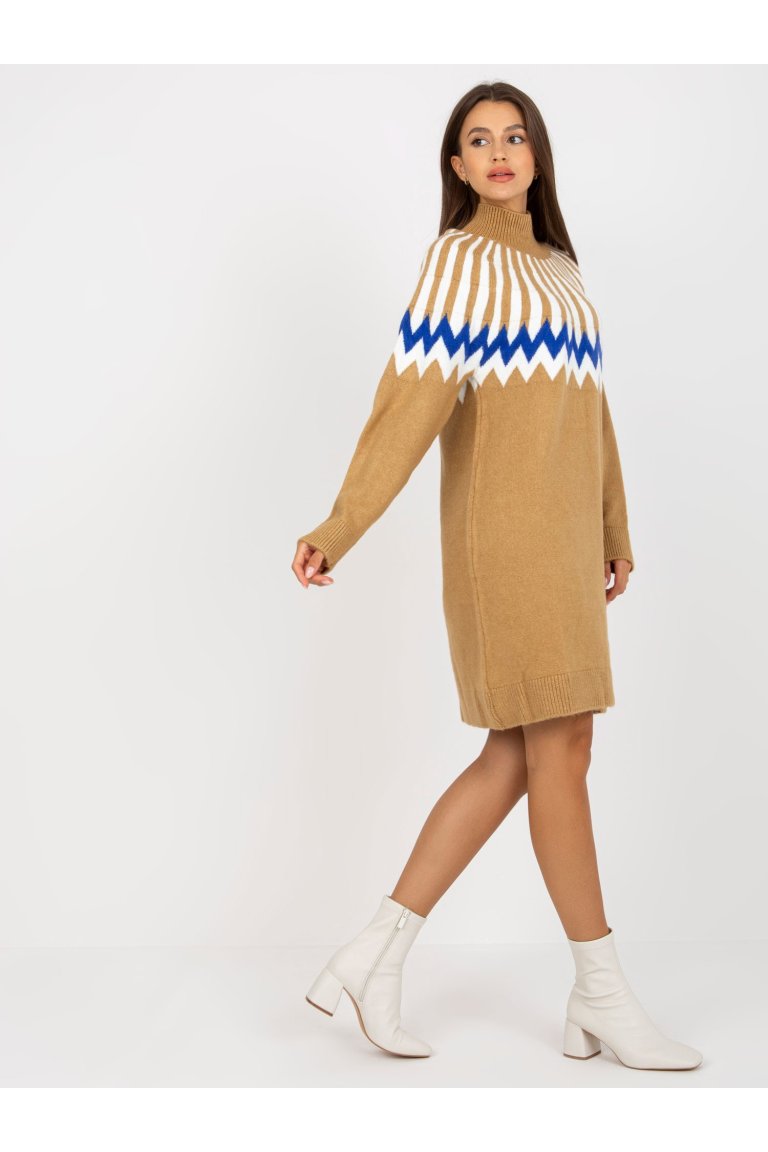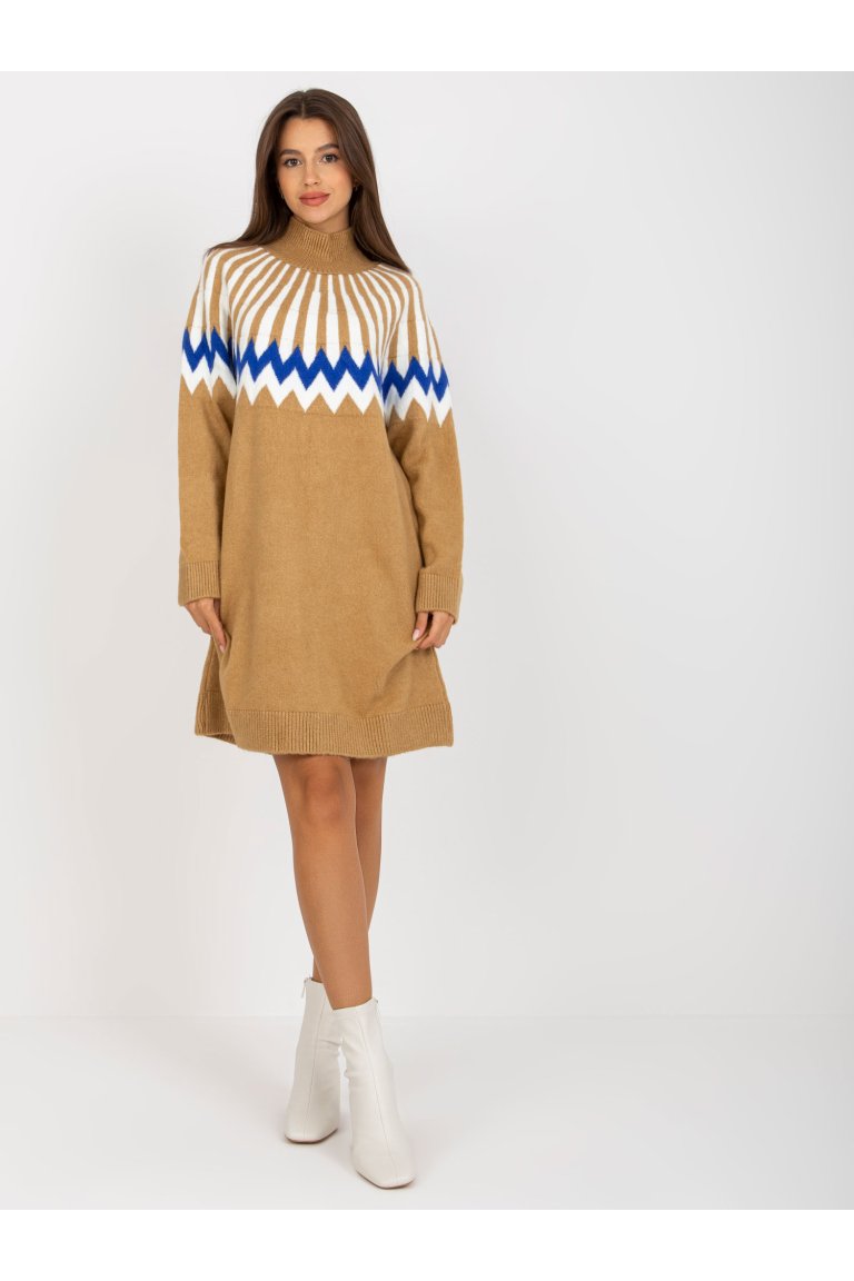 Pletené šaty Sophia. Dámske pohodlné pletené šaty so stojačikom, obľúbeného voľného strih. Sú vyrobené zo zmesi vysoko kvalitného akrylu, polyesteru a elastanu a zaručujú celodenné pohodlie. Sú univerzálnej veľkosti, takže by mali byť vhodné pre ženy, ktoré nosia veľkosť S, M a L.