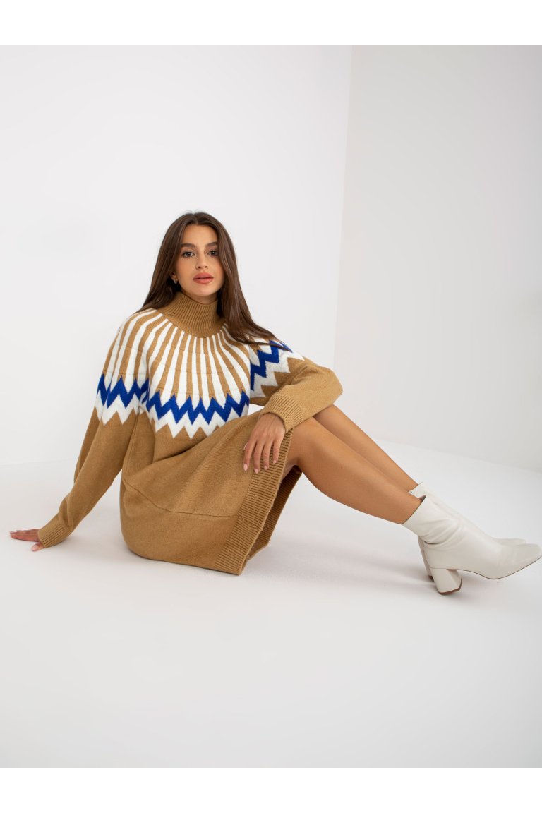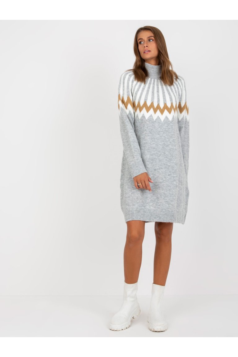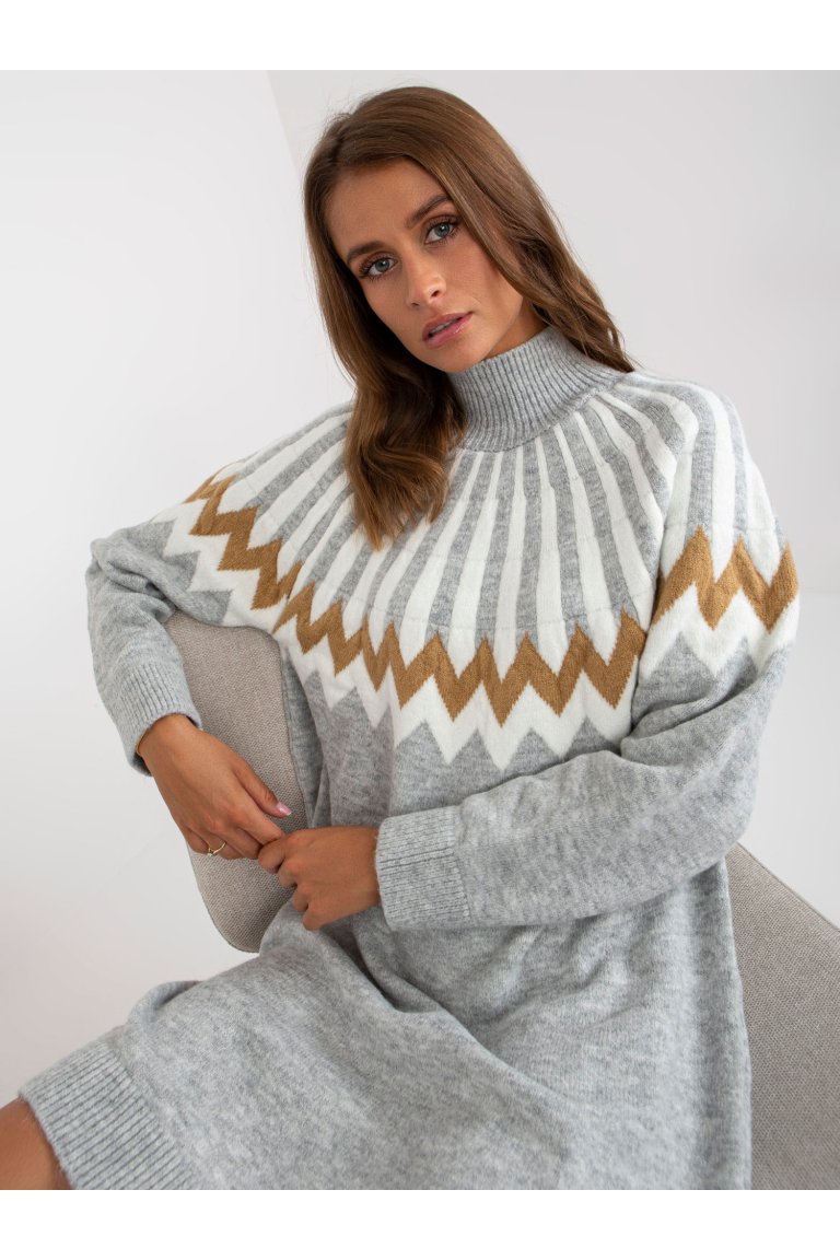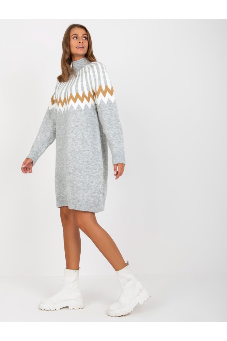 Pletené šaty Sophia. Dámske pohodlné pletené šaty so stojačikom, obľúbeného voľného strih. Sú vyrobené zo zmesi vysoko kvalitného akrylu, polyesteru a elastanu a zaručujú celodenné pohodlie. Sú univerzálnej veľkosti, takže by mali byť vhodné pre ženy, ktoré nosia veľkosť S, M a L.