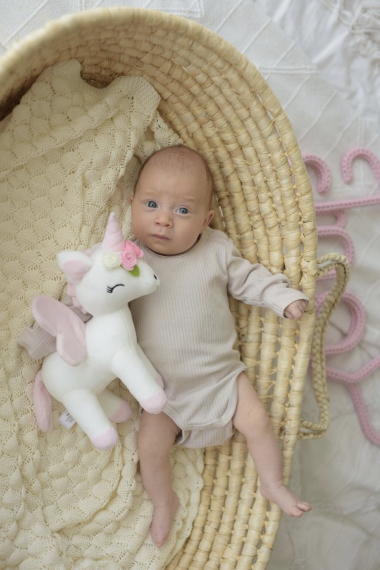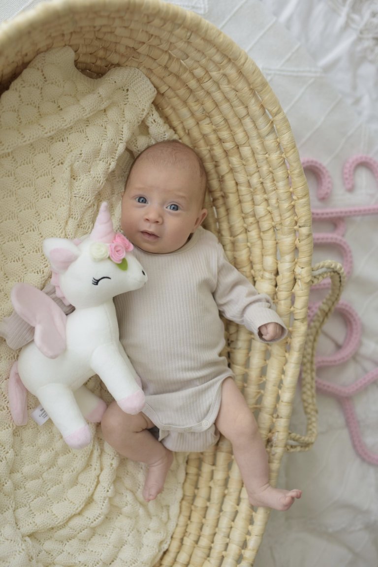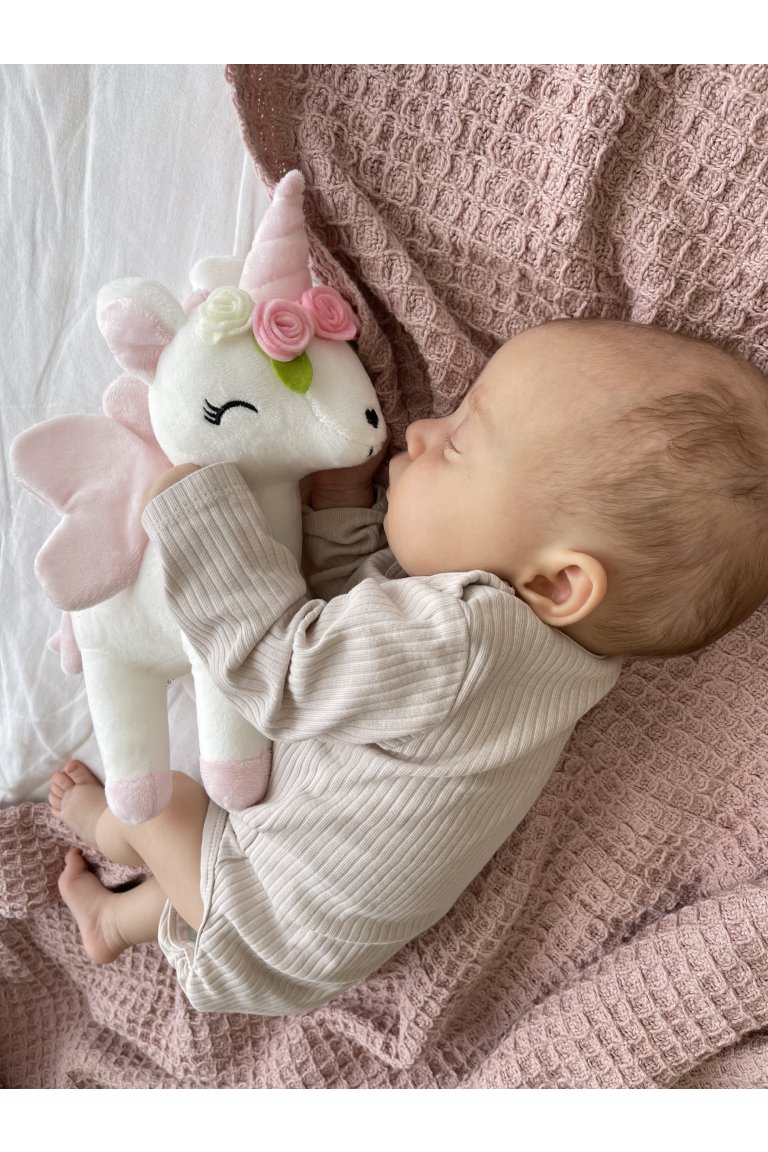 Plyšový jednorožec s venčekom biela M. Mäkká a jemná plyšová hračka v pastelových farbách sa rýchlo stane obľúbeným spoločníkom na dlhé roky. Kvalitné spracovanie a pevné švy zaručujú dlhú životnosť tejto hračky.