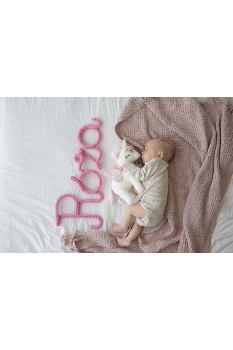 Personalizácia: ponúkame možnosť pridať na hračku meno, čím sa stáva krásnym osobným darčekom. Meno bude vyrobené z odevnej fólie certifikovanej OEKO-TEX Standard 100, čo zaručuje bezpečné použitie aj pre najmenšie detičky. Ak si prajete hračku personalizovať do poznámky pri objednávke nám prosím napíšte meno, ktoré si na hračku prajete. Do poznámky napíšte aj farbu písma: biele, sivé, béžové, čierne alebo ružové. Doba dodania je približne 7/14 dní.