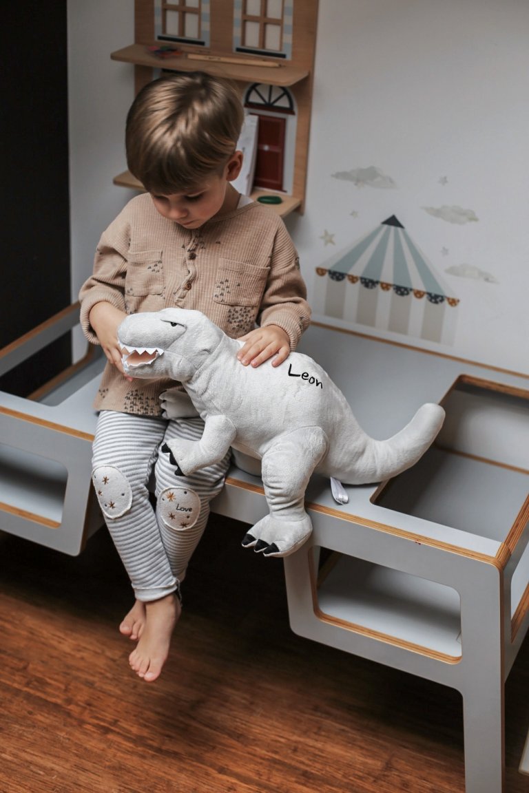 Plyšový Tyranosaurus Rex sivá L. Mäkká a jemná plyšová hračka v pastelových farbách sa rýchlo stane obľúbeným spoločníkom na dlhé roky. Kvalitné spracovanie a pevné švy zaručujú dlhú životnosť tejto hračky.