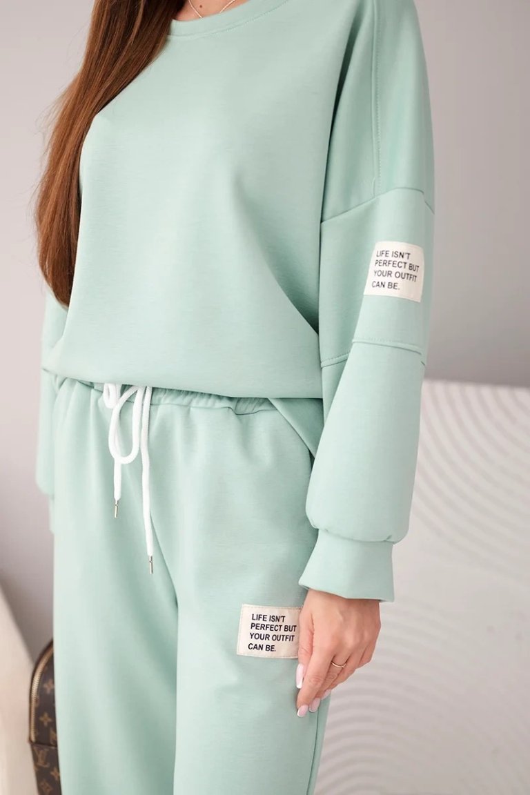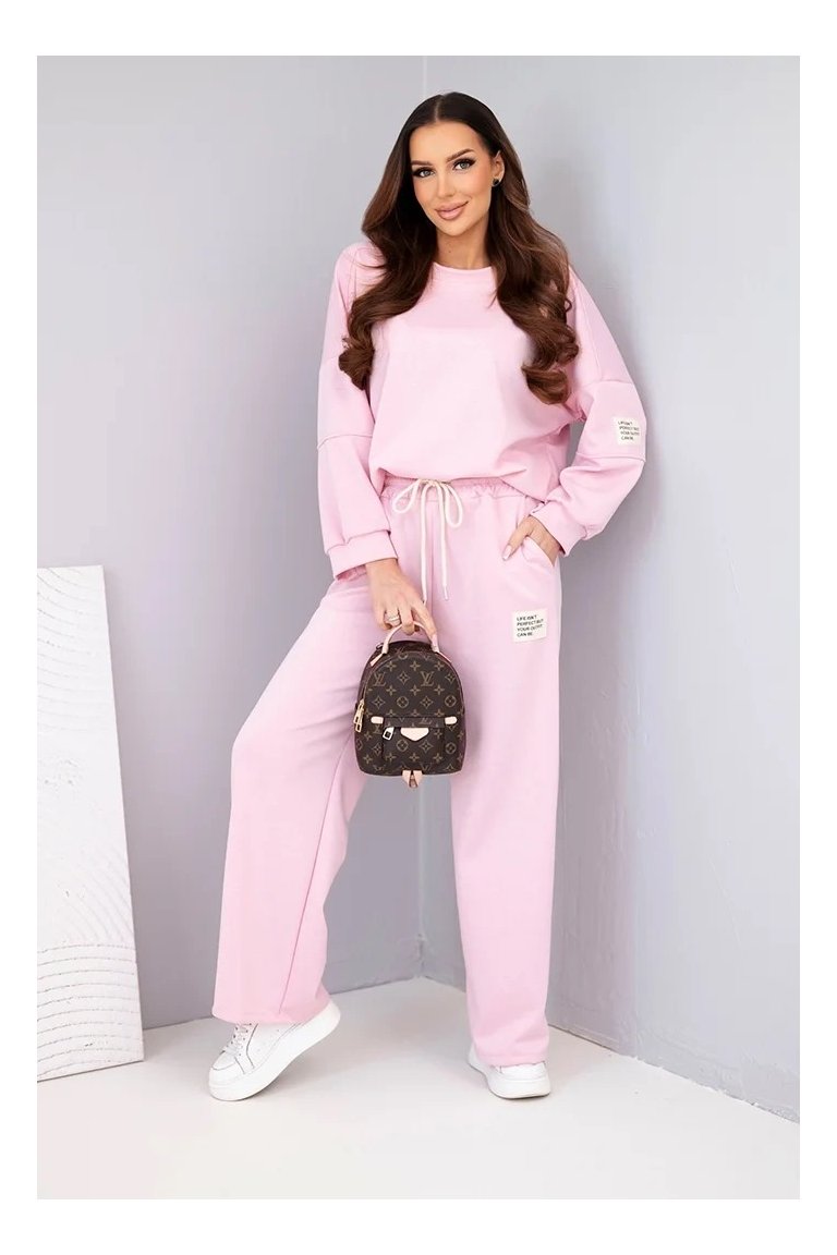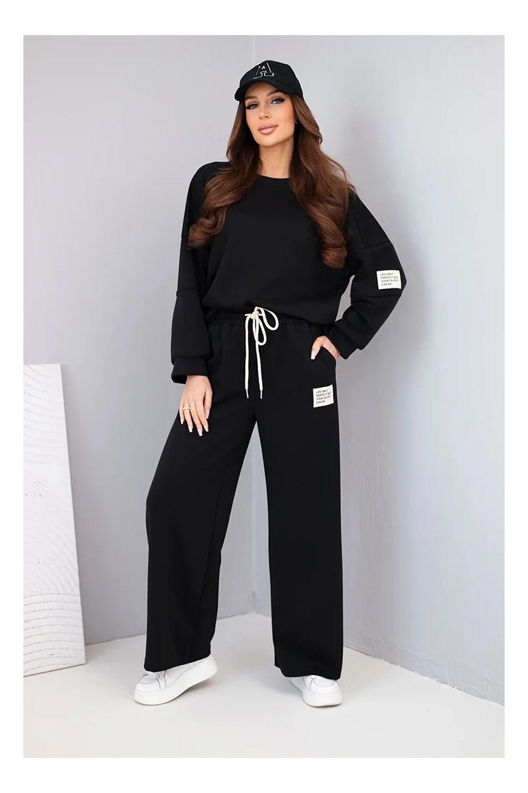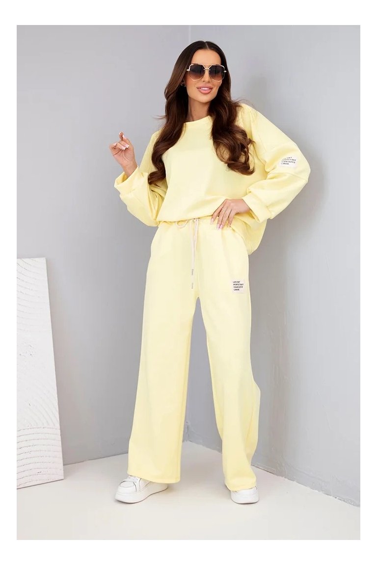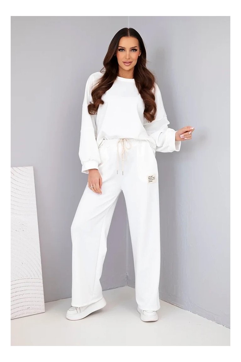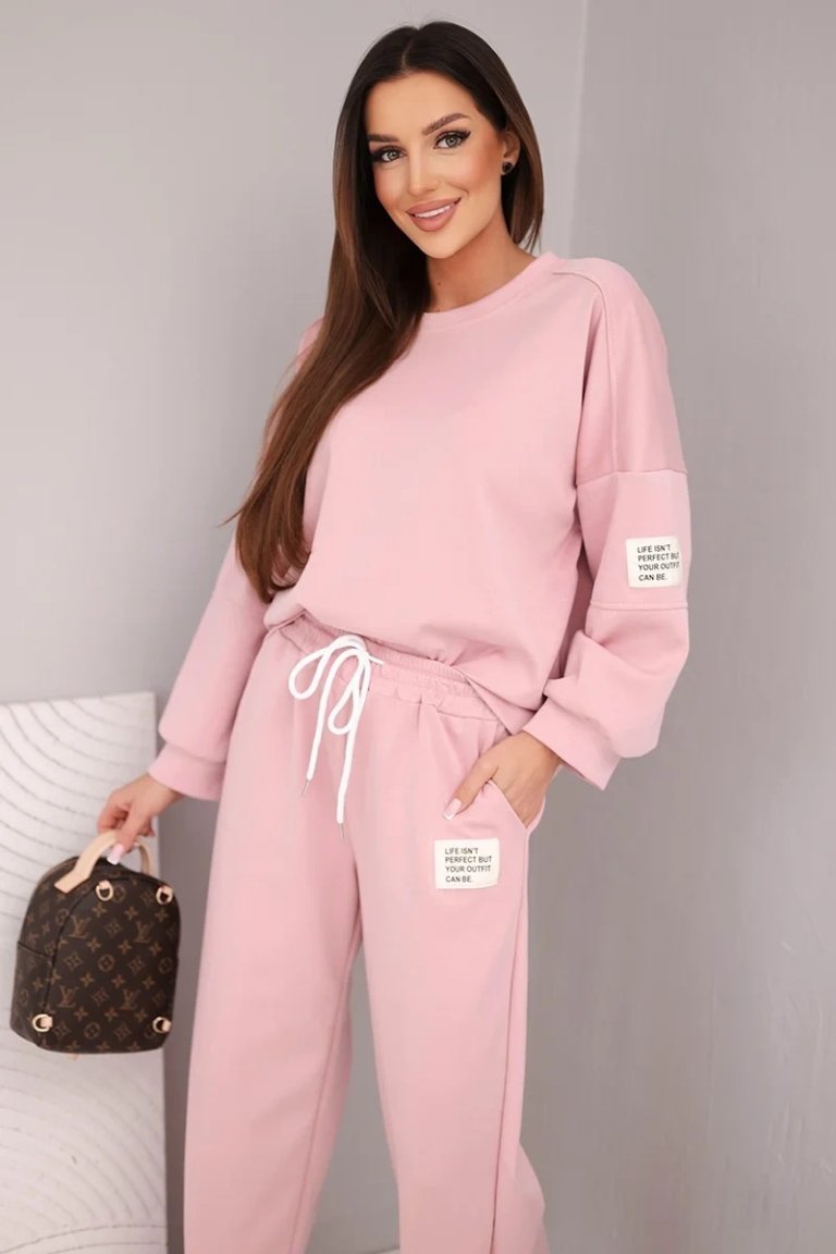 Tepláková súprava Astrid. Dámska pohodlná tepláková súprava s mikinou voľného strihu so spustenou líniou ramien a pohodlné nohavice so širokým strihom. Súprava je vyrobená z kvalitného a príjemného materiálu. Je univerzálnej veľkosti, takže by mala byť vhodná pre ženy, ktoré nosia veľkosť S, M a L.