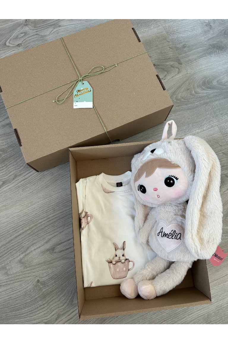 Nádherný darček pre dievčatko nielen pod stromček. Balík obsahuje body s dlhým rukávom s roztomilou potlačou a hračku s možnosťou personalizácie. Bábika značky METOO vo veľkosti 50 cm. Balíček je vo veľmi výhodnej cene. Balíček vám príde takto pekne zabalený, takže ho už stačí len položiť pod stromček :)