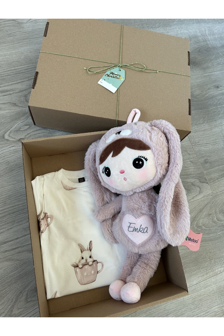 Nádherný darček pre dievčatko nielen pod stromček. Balík obsahuje body s dlhým rukávom s roztomilou potlačou a hračku s možnosťou personalizácie. Bábika značky METOO vo veľkosti 50 cm. Balíček je vo veľmi výhodnej cene. Balíček vám príde takto pekne zabalený, takže ho už stačí len položiť pod stromček :)