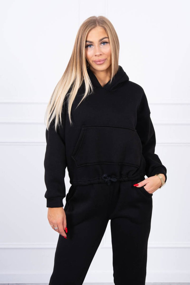 Zateplená súprava Rory. Dámska zateplená tepláková súprava. Mikina má kapucňu a zaväzovanie v spodnej časti. Nohavice s vreckami a gumičkou na spodnom leme. Súprava je vyrobená z kvalitného a pohodlného materiálu. Je univerzálnej veľkosti, takže by mala byť vhodná pre ženy, ktoré nosia veľkosť S a M.